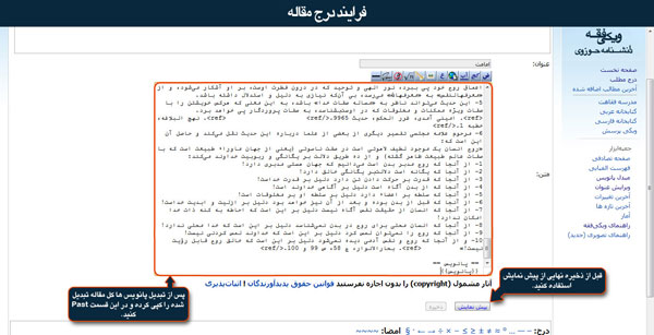 در صفحه درج مطلب پس از وارد کردن عنوان مقاله، متن کپی شده از قسمت مبدل پانویس ها را در بخش مربوطه Paste کنید.